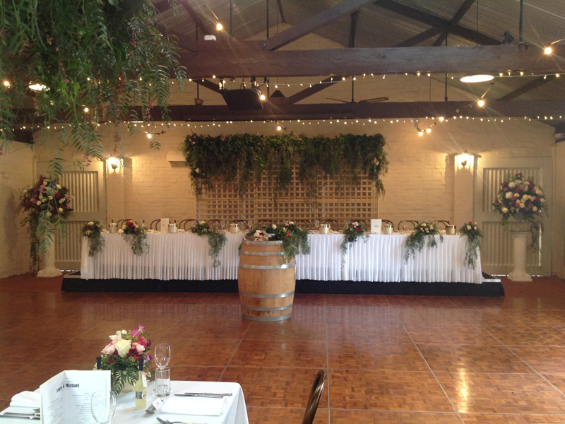 The spring theme flowed on to Sunnybrae. Above the long tables soft greenery cascaded down. Flowers were everywhere to be seen; from the table centrepieces to the lattice photo stand and the wishing well.